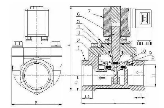 當(dāng)入口與出口達(dá)到啟動(dòng)壓差時(shí),通電后,電磁力先導(dǎo)小閥,主閥下腔壓力上升,上腔壓力下降,從而利用壓差把主閥向上推開;斷電時(shí),先導(dǎo)閥利用彈簧力或介質(zhì)壓力推動(dòng)關(guān)閉件,向下移動(dòng),使閥門關(guān)閉。